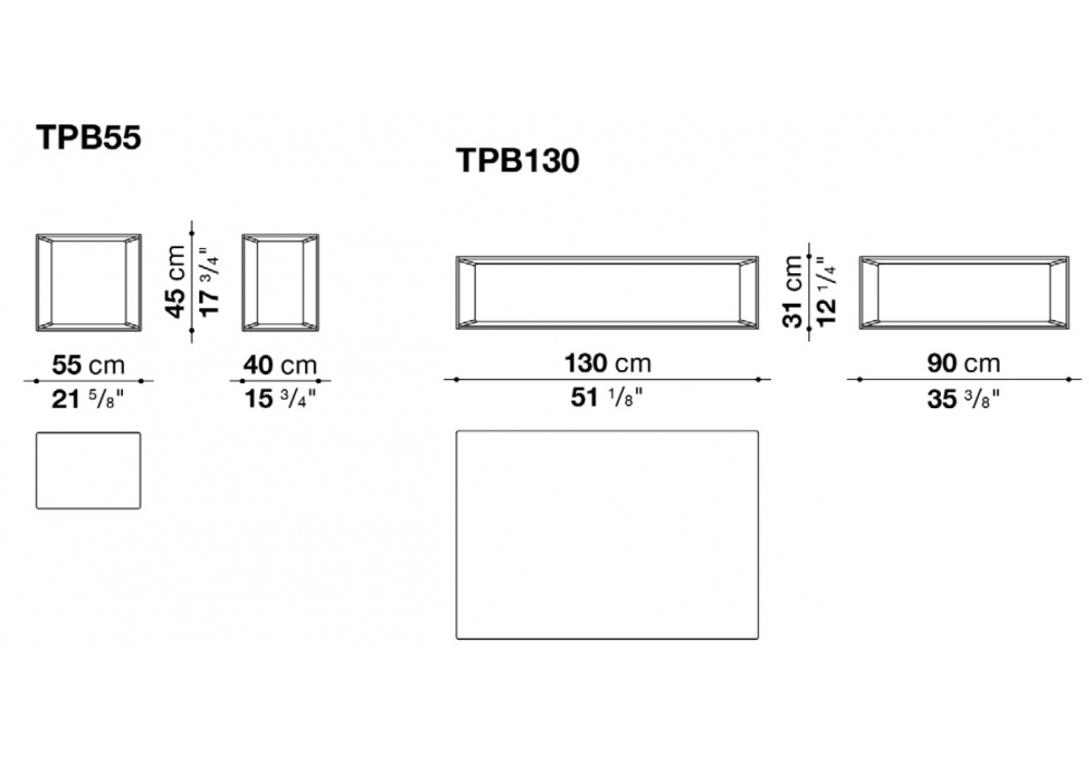 | Dimensioni | 55 x 40 x H 45 cm; 130 x 90 x H 31 cm. |