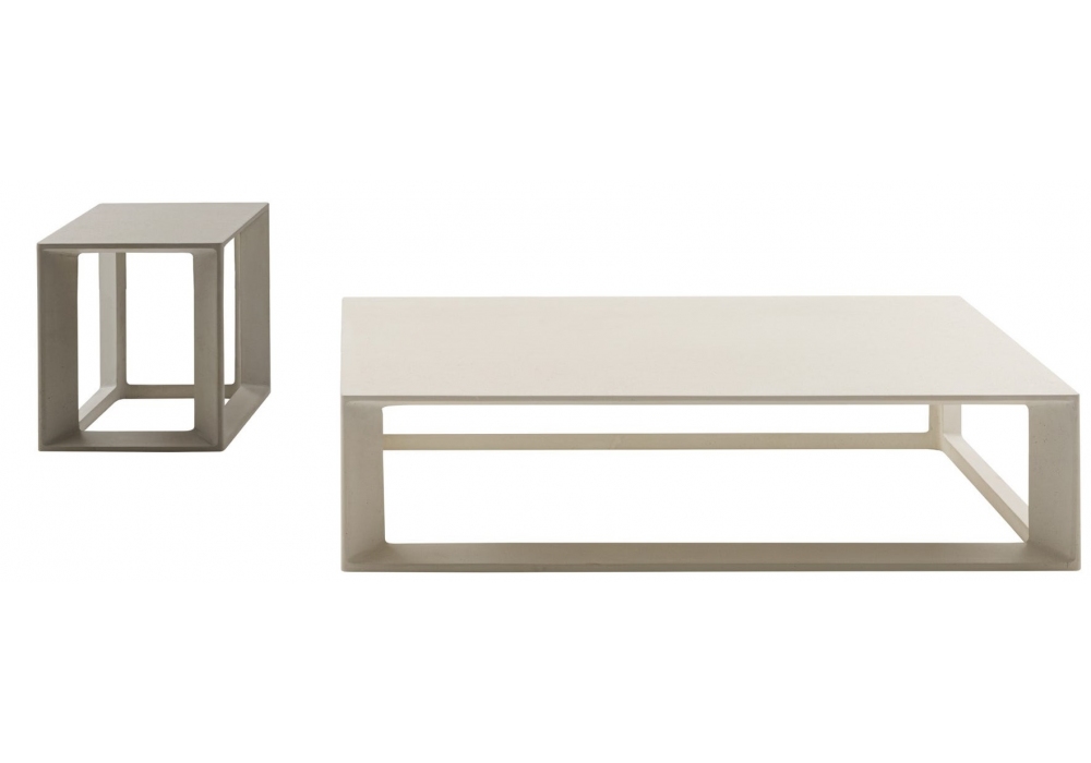 Pablo firmato da Vincent Van Duysen per B&B Italia Outdoor è un tavolino con piano e struttura in cemento greige o bianco. Disponibile in due dimensioni.