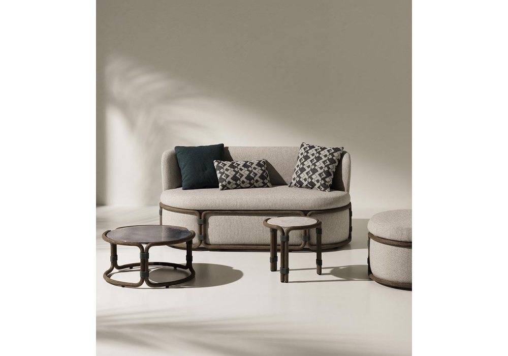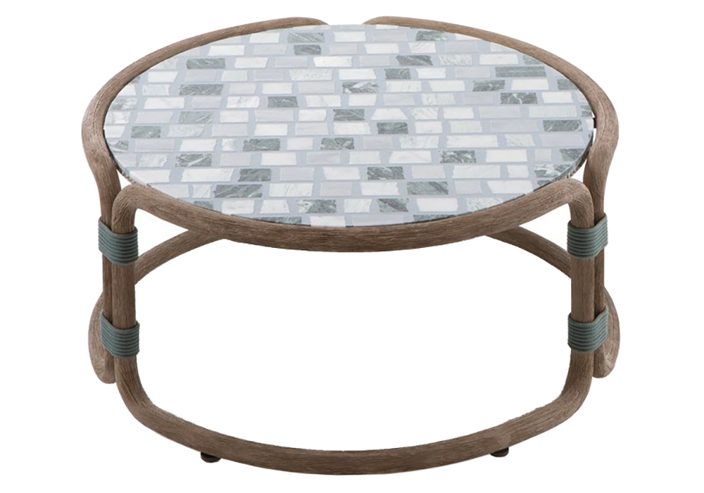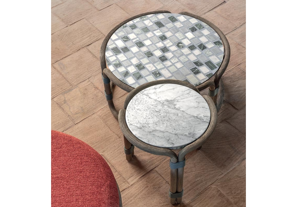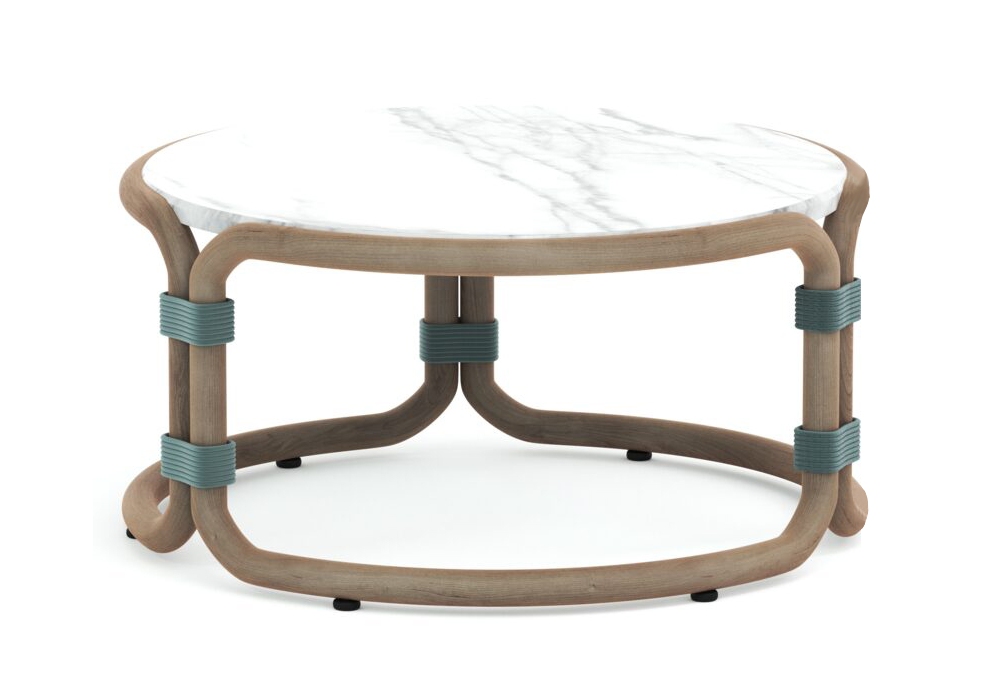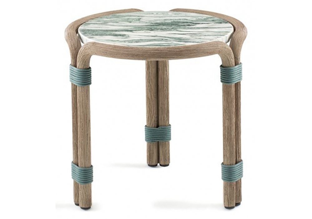 Rotin firmato da Zanellato/Bortotto per Ethimo è un tavolino con struttura in legno teak e piano in marmo. Rotin è disponibile in differenti finiture e dimensioni.