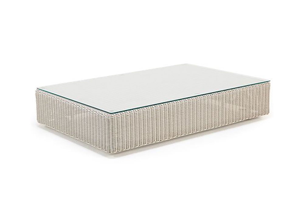 Cube prodotto e firmato da Ethimo è un tavolino quadrangolare strutturato da una scocca in fibra intrecciata di etwick e piano in vetro. Cube è disponibile in differenti dimensioni e finiture.