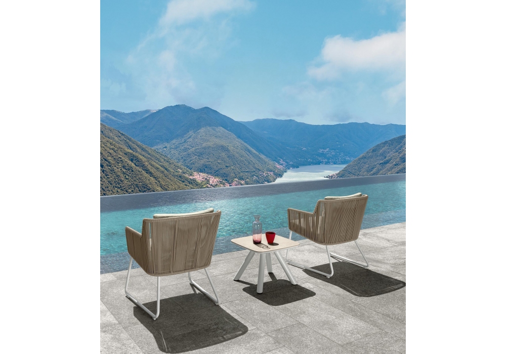 Coral firmata da Marco Acerbis per Talenti è una collezione di tavolini da esterno realizzata con base in alluminio e piano in gres.