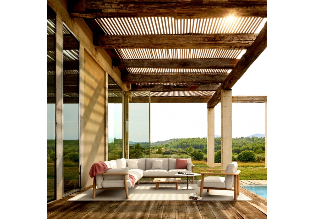 Mambo Lounge firmato da Kris Van Puyvelde per Royal Botania è un tavolino da esterno con struttura in teak e piano in differenti finiture e materiali.