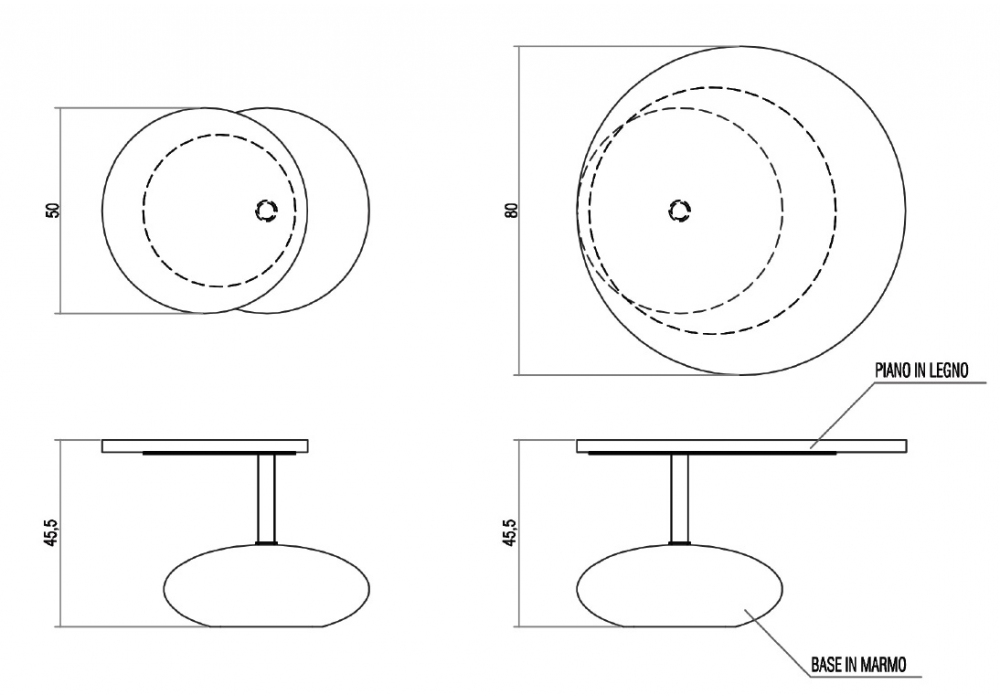 | Diametro del piano | Ø 50 cm; Ø 80 cm. |