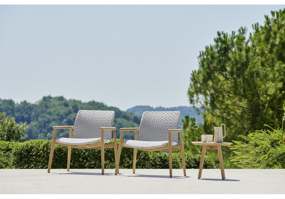 Lapis firmato da Calvi Brambilla per Varaschin è un tavolino con struttura in legno massello di teak di piantagione certificata.