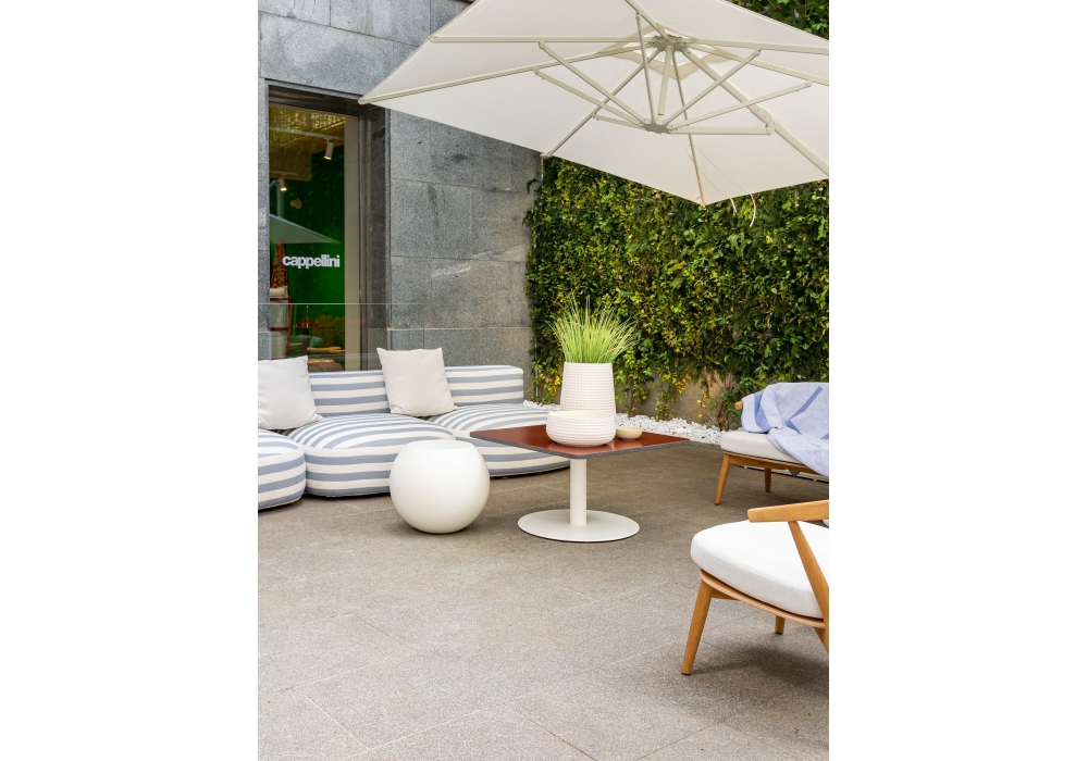 Bong Lido firmato da Giulio Cappellini per Cappellini è un tavolino di forma sferica con piano rotondo realizzato in fibra di vetro e resina con verniciatura a liquido per esterni.