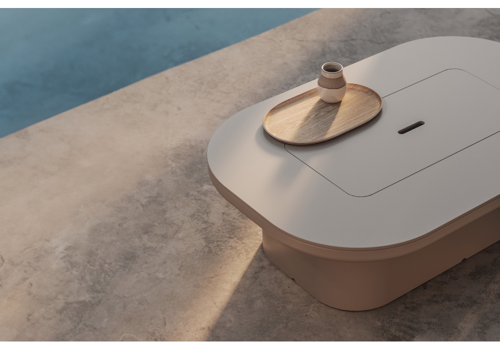 Luna firmato da Ramón Esteve per Vondom è un tavolino realizzato con struttura in polietilene riciclabile al 100% e piano in HPL. Disponibile in diverse finiture.