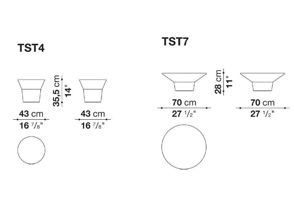 | Dimensioni | Ø 43 x H 35.5 cm; Ø 70 x H 28 cm |