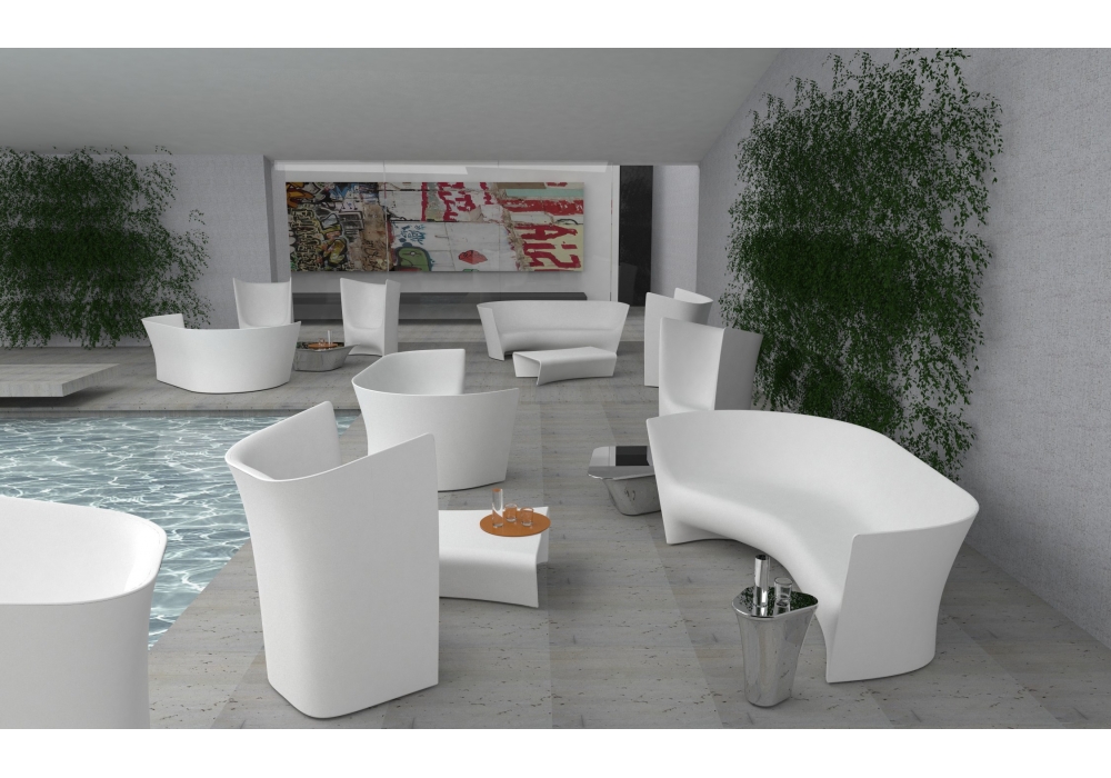 Piaffè firmato da Ludovica+Roberto Palomba per Driade è un tavolino monoblocco da esterno in polietilene disponibile in due varianti di colore: bianco o grigio chiaro.