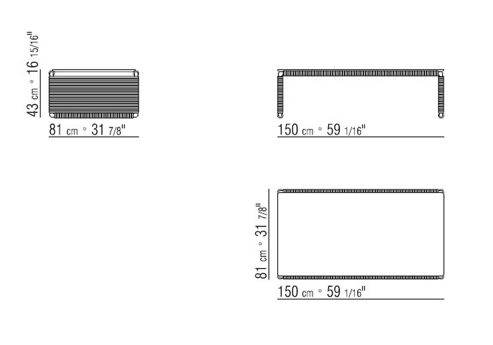 | Dimensioni | • 60 x 42 x H 36 cm; • 150 x 81 x H 43 cm |