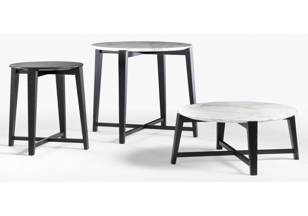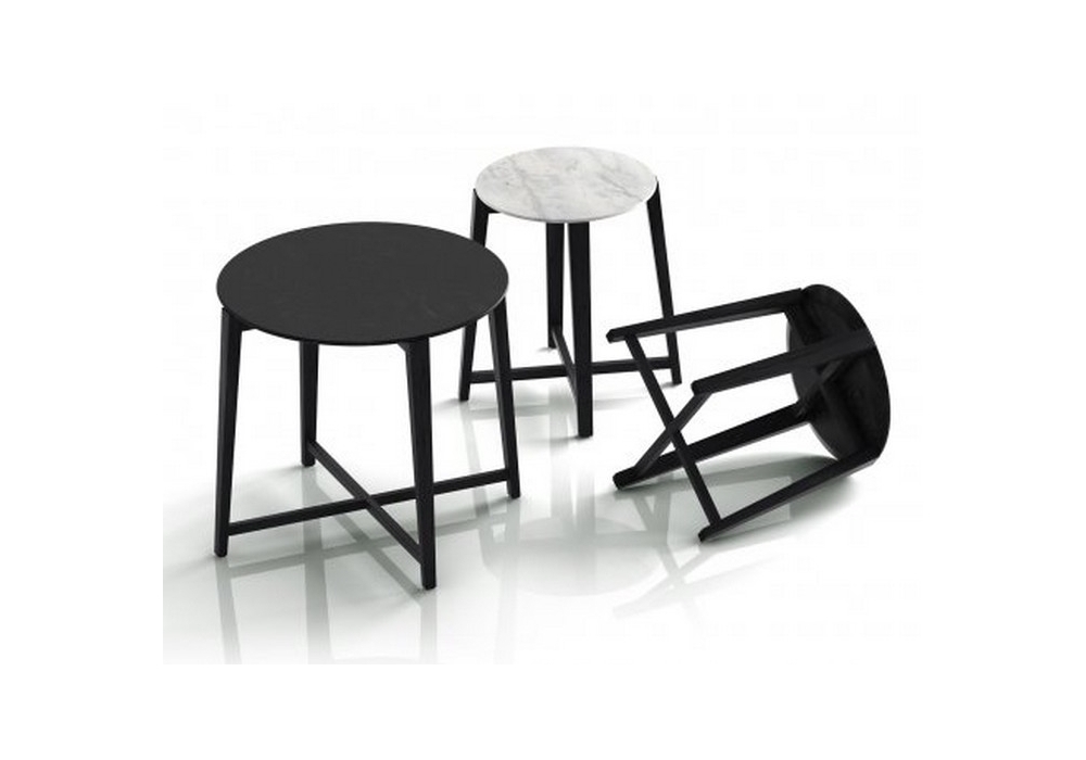 Tris è un tavolino disegnato da Centro Studi per Flexform. Struttura in legno, piano in legno o marmo.