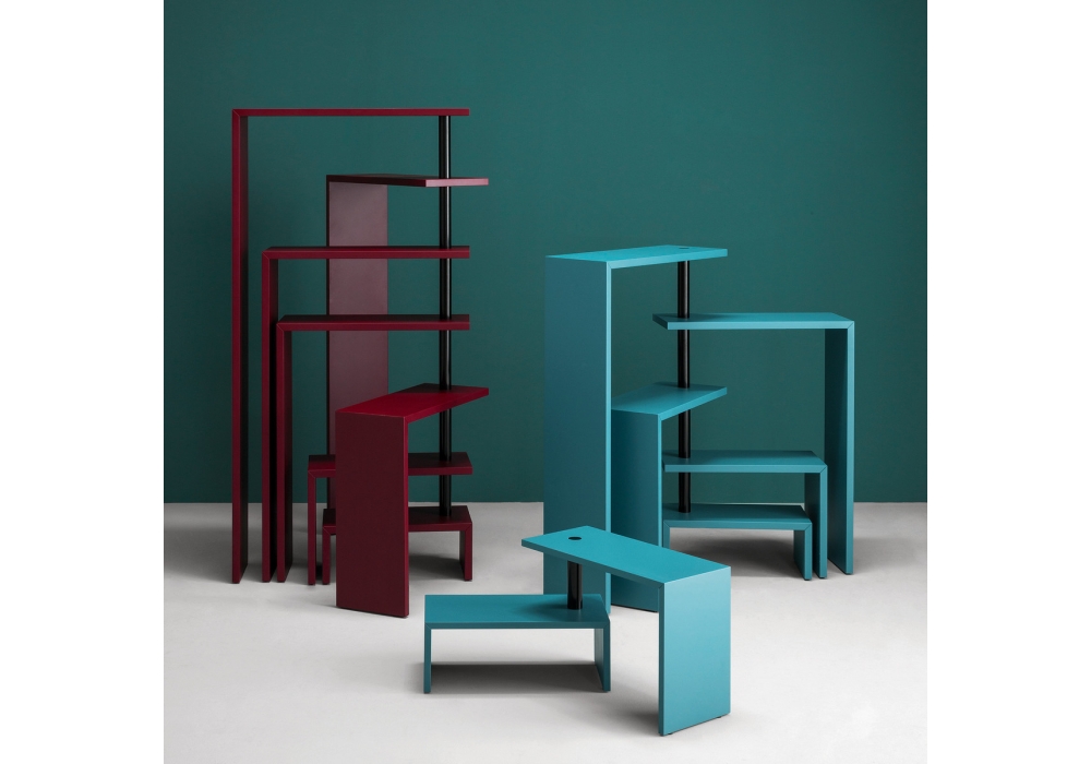 638 Basello firmato da Achille Castiglioni per Zanotta è un tavolino a doppia altezza con apertura variabile. Struttura in fibra di legno a media densità rifinita con goffratura antigraffio nei toni bianco, nero o bordeaux. Snodo in acciaio verniciato nero nelle versioni nera o bordeaux oppure bianco nella versione bianca.