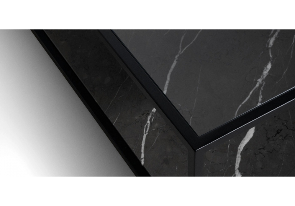 Quadrato Espositore firmato da DePadova è un tavolino con struttura in quadralini di acciaio verniciato a polvere color bianco opaco o nero goffrato. Il piano superiore in vetro trasparente o fumè e piano inferiore in marmo idrorepellente o opaco, MDI o pietra in diverse finiture. Quadrato Espositore è disponibile in differenti dimensioni.