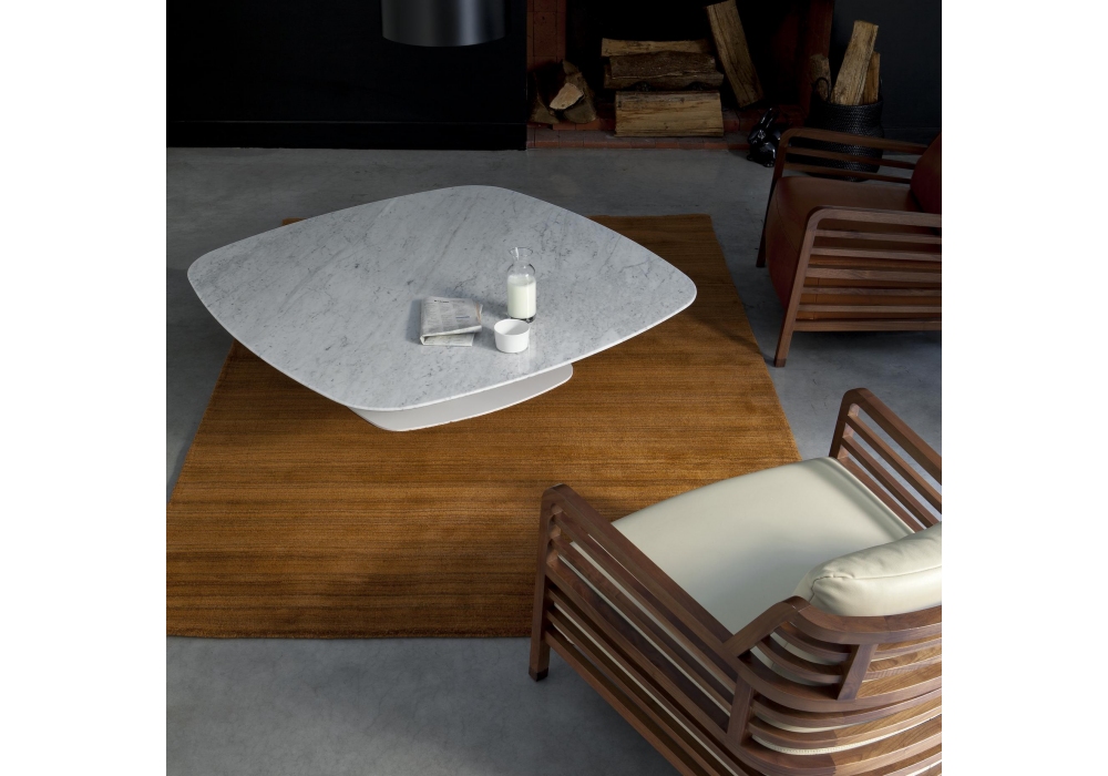 Alster firmato da Emmanuel Dietrich per Ligne Roset è un tavolino con piano in marmo bianco Carrara venato grigio chiaro spessore 20 mm con bordo bisellato. Piedistallo centrale in acciaio laccato bianco epossidico. Disponibile anche con piano in massello di noce europeo verniciato opaco spessore 40 mm con bordi bisellati e piedistallo centrale in acciaio laccato nero.