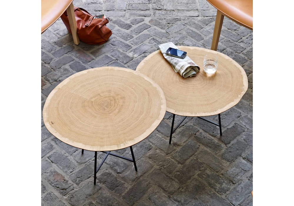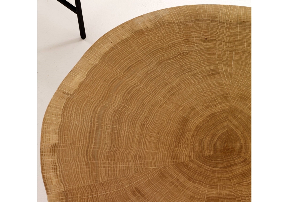 Alburni firmato da LucidiPevere Studio per Ligne Roset è un tavolino d'appoggio con piano in MDF impiallacciato rovere di testa con base in acciaio laccato nero. A causa della forma irregolare del piano, è possibile che il diametro massimo indicato sopra vari leggermente.