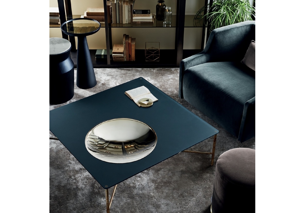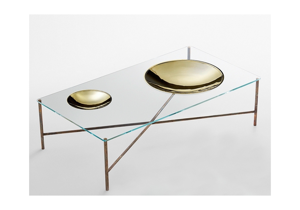 Golden Moon firmato da Massimo Castagna per Gallotti&Radice è un tavolino con piano in cristallo trasparente extralight temperato 12mm. A richiesta retroverniciato nei colori del campionario, nella versione brillante o satinata. Piatto in ottonelucido. Struttura in ottonebrunito a mano. L’ottone risulta naturalmente macchiato e disomogeneo. Questa lavorazione artigianale conferisce ad ogni pezzo una particolare unicità, rendendolo esclusivo.