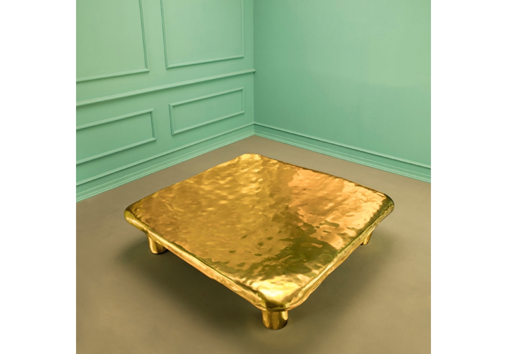 Euphoria prodotto da Scarlet Splendour è un tavolino basso dalla forma organica e superficie ondulata, realizzato in ottone fuso laccato lucido.