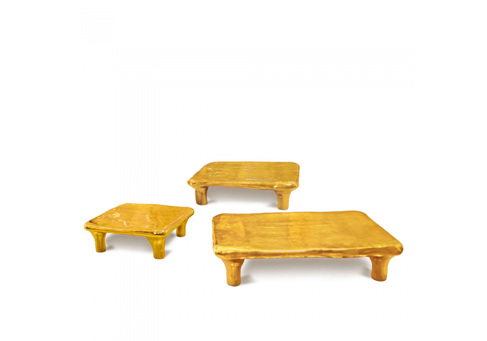 Illusion prodotto da Scarlet Splendour è un tavolino quadrato, fuso in ottone laccato lucido.