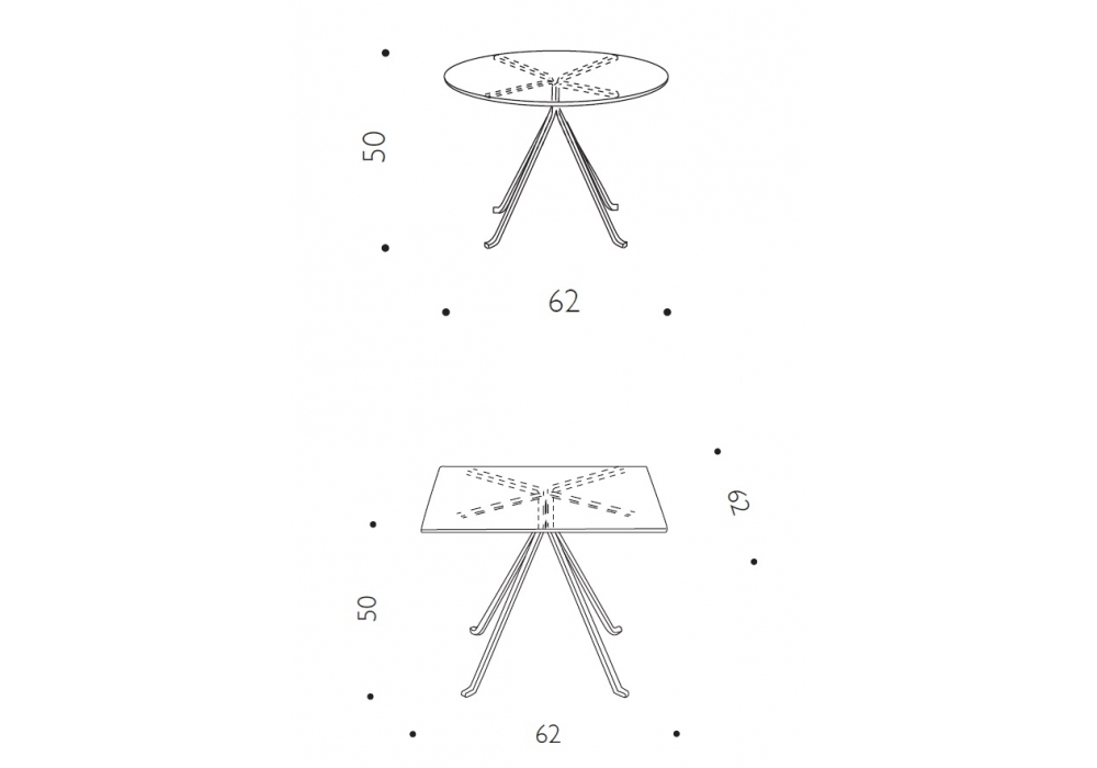 | Dimensioni | -Ø 62 X h 50 cm; - 62 x 62 x H 50 cm. |