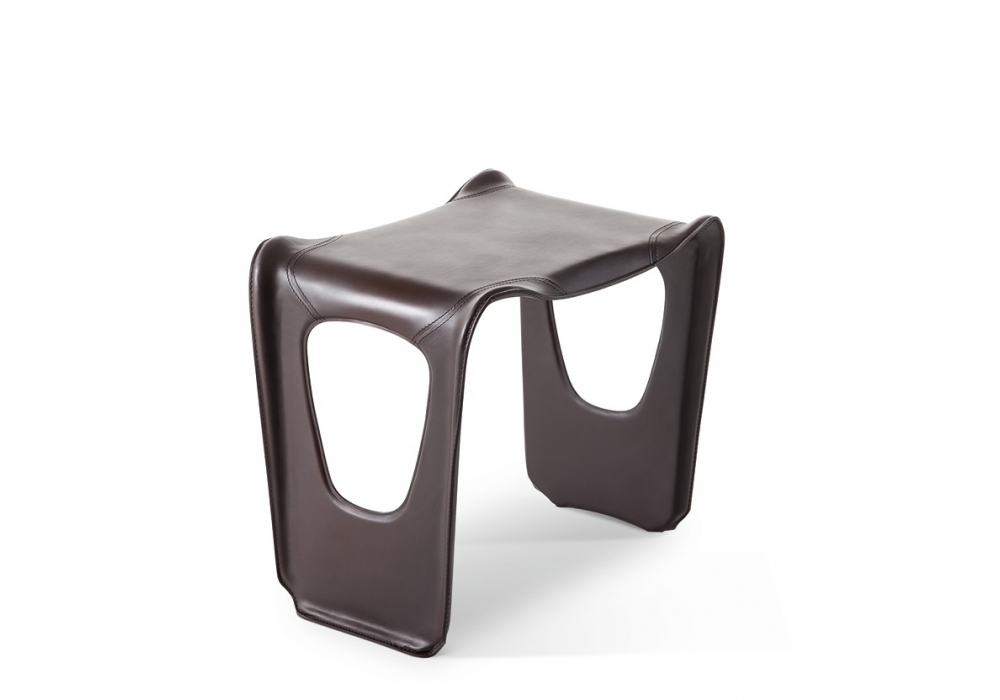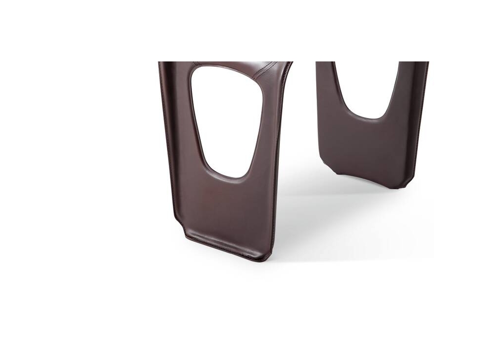 530 Guéridon J.M. firmato da Charlotte Perriand per Cassina è un tavolino realizzato con struttura in fibra di vetro, rivestimento in cuoio e piedini in feltro adesivo.