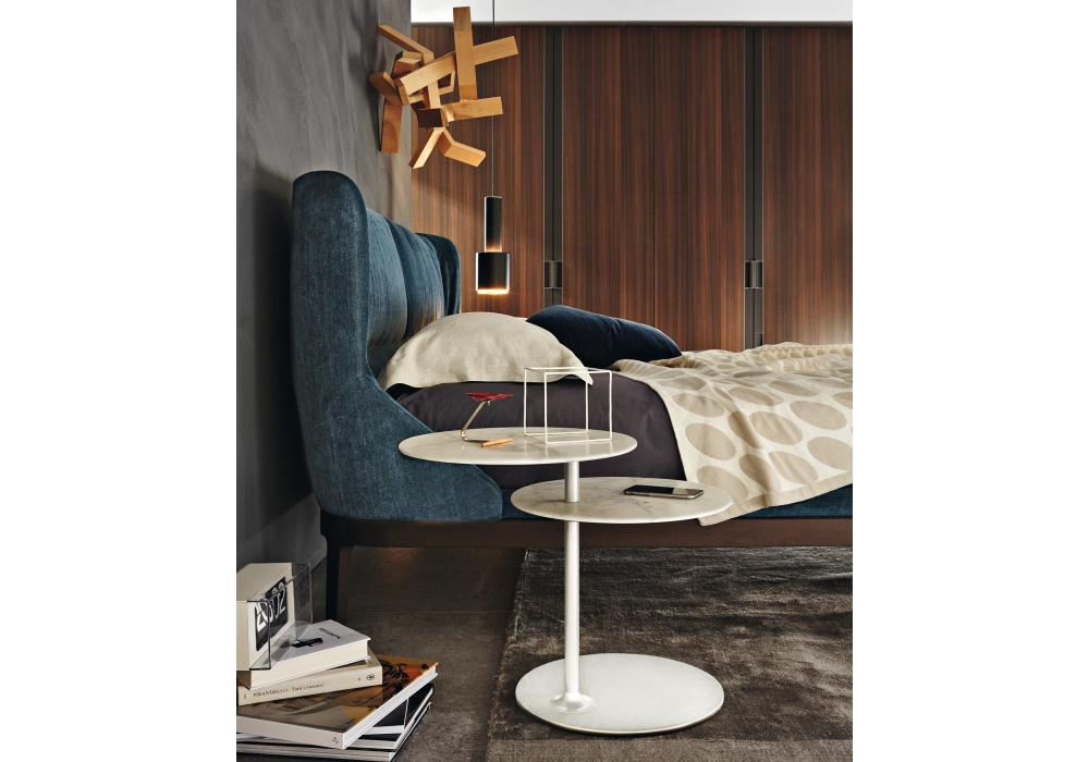 Vicino Table firmato da Foster+Partners per Molteni&C è un tavolino con struttura metallica su cui sono posti due piani: inferiore fisso e superiore girevole.