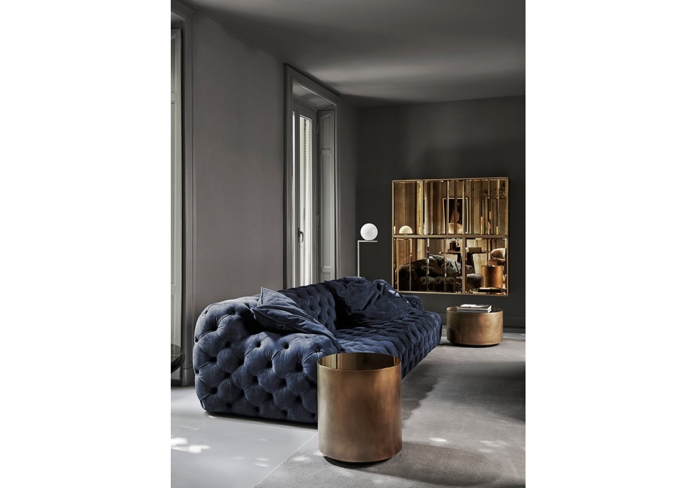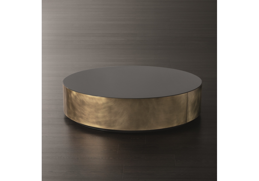 Belt firmato da Andrea Parisio per Meridiani è un tavolino che presenta una base laccata in lava opaco, fascia perimetrale in ottone bronzato o acciaio platinato. Piano disponibile impiallacciato in rovere, marmo, vetro, specchio, laccato opaco o lucido. Realizzato in diverse dimensioni.