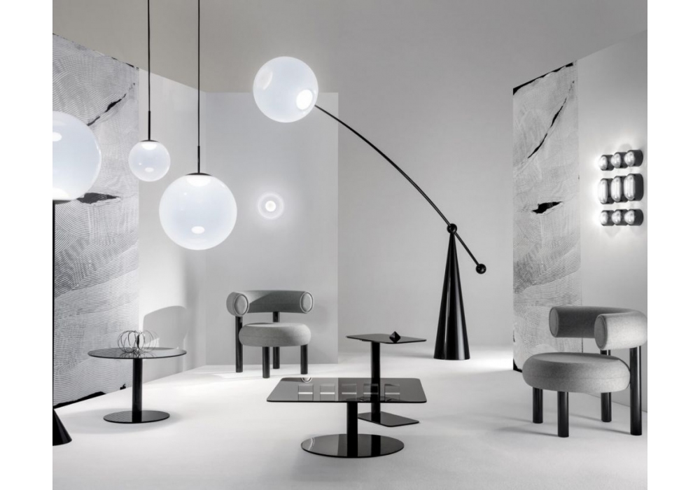 Flash Table Square firmato da Tom Dixon è un tavolino quadrato con piano in vetro con finitura a specchio. La gamba del tavolino è disponibile in ottone o nera.