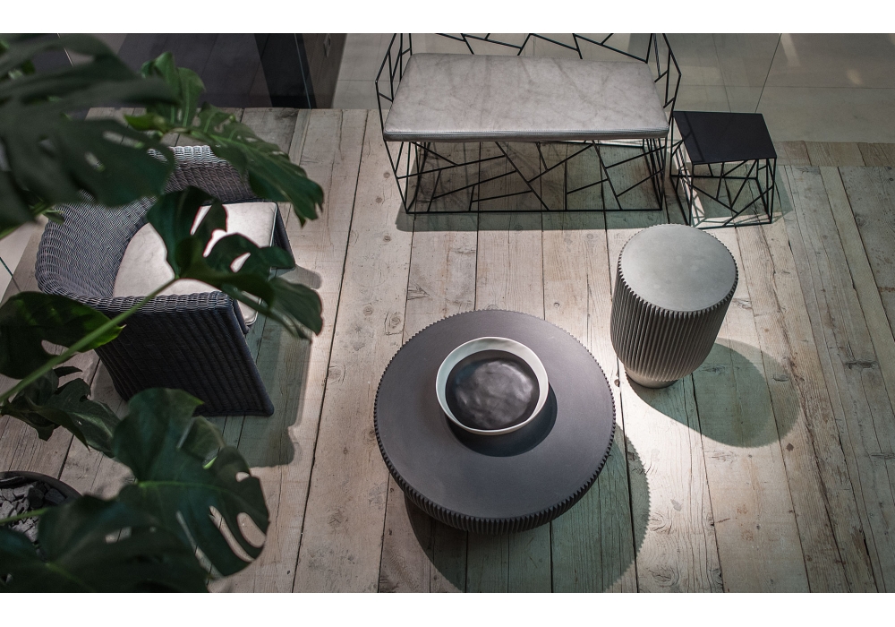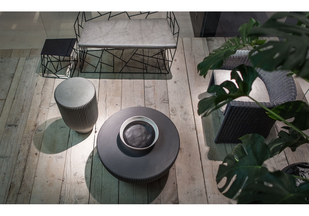 Juno firmato da Draga & Aurel per Baxter è un bellissimo tavolino con struttura circolare realizzata in cemento modellato in modo da creare delle plissettature verticali sulla superficie. Disponibile in cemento verde muschio, tortora e blu.
