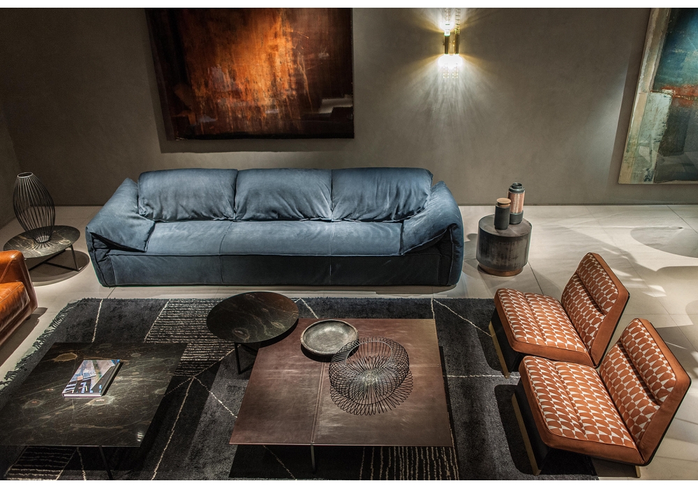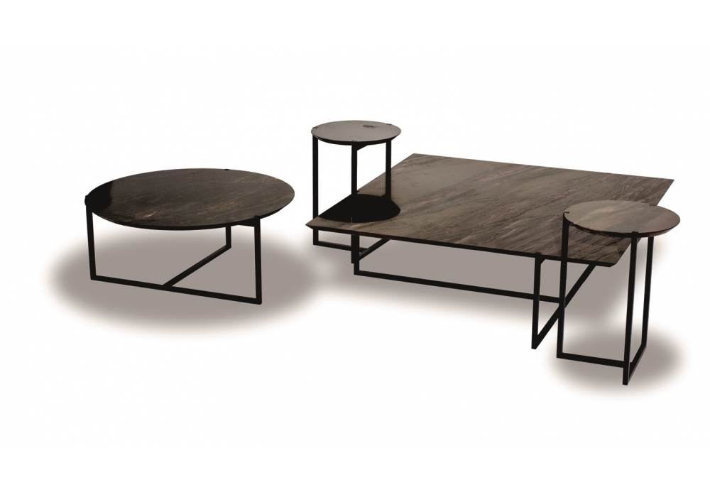 Icaro firmato da Baxter P. per Baxter è un tavolino con base in metallo verniciato nero opaco. Piano in MDF e fogli di alluminio di rinforzo rivestito in pelle o, a scelta, in pietra a seconda della misura.