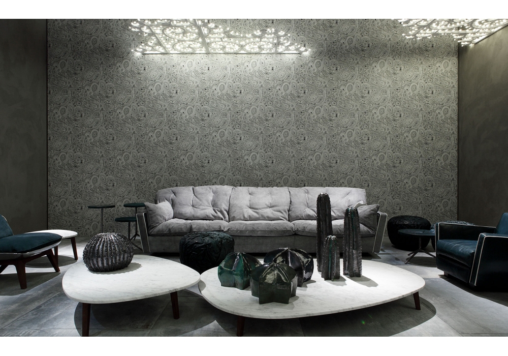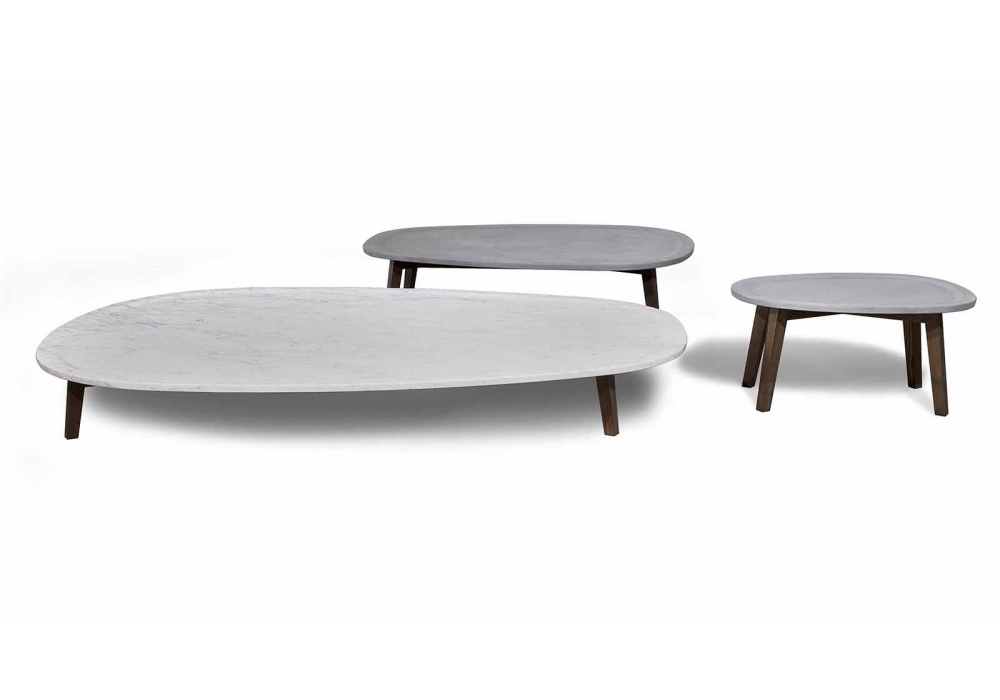 Vietri firmato da Paola Navone per Baxter è un tavolino con base in frassino spazzolato tinto noce e piano sagomato spessore 2 cm,¾" con ribassamento a vassoio da 0,5 cm, ¼" e svasatura esterna. Disponibile in marmo Bianco Gioia opaco ed in tre dimensioni.