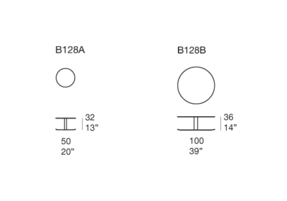 | Dimensioni | Ø 50 x H 32 cm; Ø 100 x H 36 cm. |