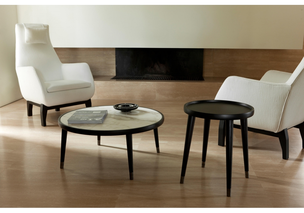 Bignè firmato da Emanuela Garbin & Mario Dell'Orto per Porada è un tavolino con struttura in massello di frassino e puntali in metallo. Piano disponibile in marmo, in cuoietto o in legno. Disponibile in tre diverse dimensioni.