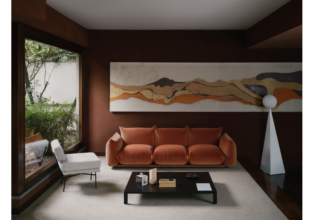 Bonsai firmato da Claesson Koivisto Rune per Arflex è un tavolino realizzato con piano in marmo e struttura in frassino tinto cioccolato.