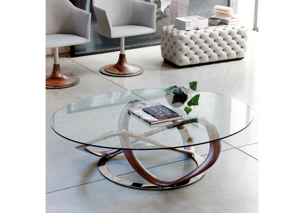 Infinity firmato da S. Bigi per Porada è un tavolino con struttura in massello di noce canaletta o frassino disponibile in diverse finiture, montata su una base in metallo. Piano in cristallo temperato (spessore mm. 10). Disponibile in diverse dimensioni.