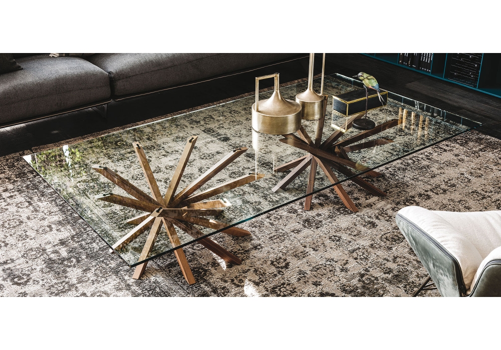 Atari firmato da Giorgio Cattelan per Cattelan Italia è un tavolino con base in legno massello disponibile in noce Canaletto o noce tinto rovere bruciato. Piano in appoggio in cristallo trasparente. Disponibile in diverse forme e dimensioni.