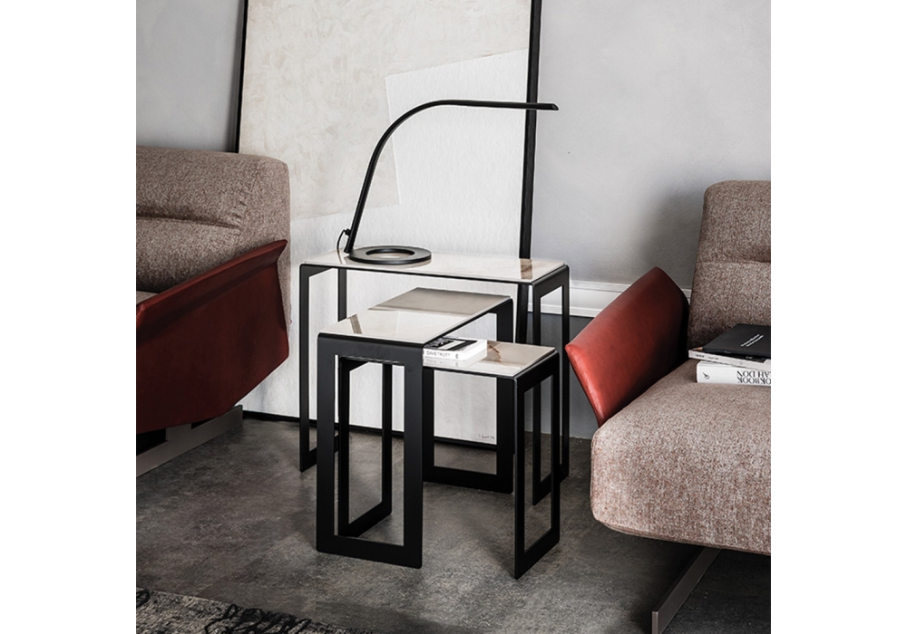 Kitano firmato da Paolo Cattelan per Cattelan Italia è un tavolino con base realizzata in acciaio verniciato nelle finiture bianco, nero o graphite opaco. Piano in ceramica Marmi disponibile nei colori Calacatta, Alabastro, Ardesia o portoro. Disponibile in 4 diverse dimensioni.