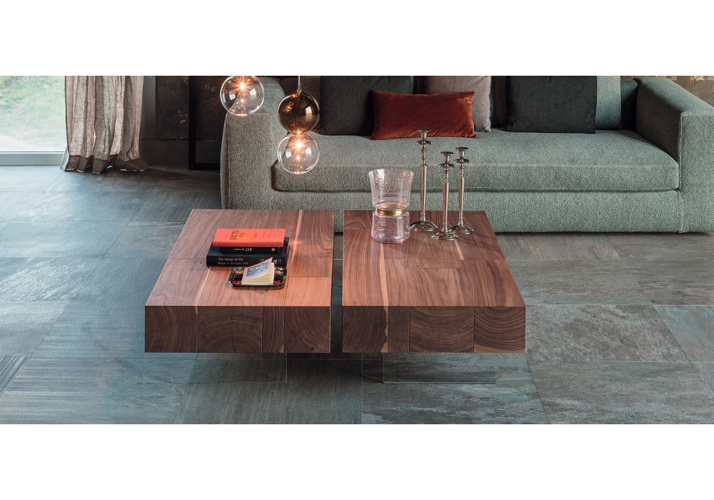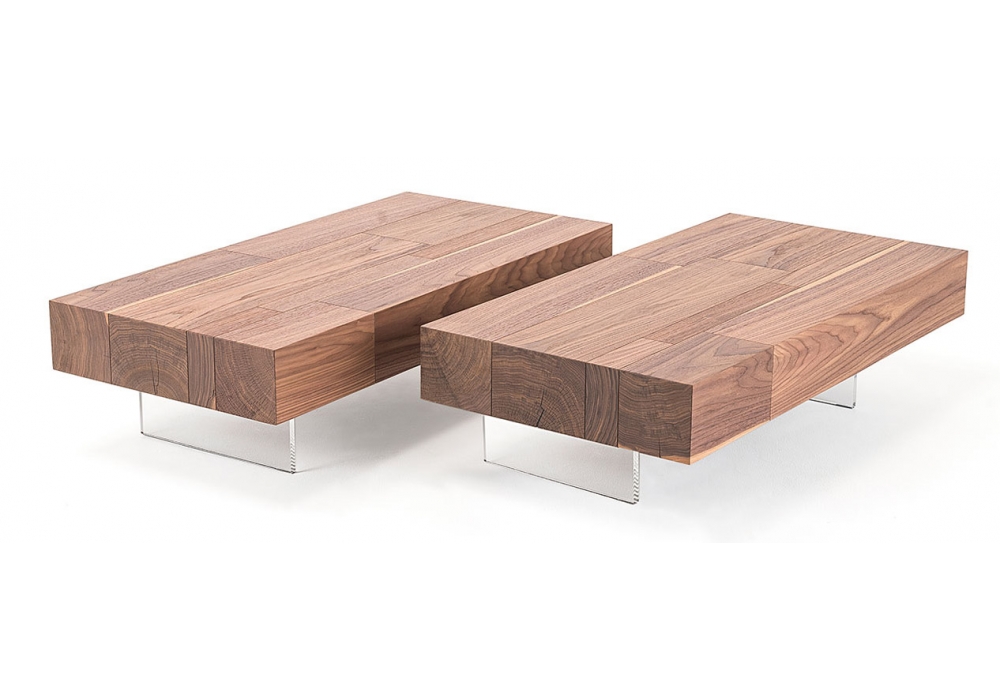 Lingotto firmato da Paolo Cattelan per Cattelan Italia è un tavolino con piano realizzato in legno di noce Canaletto e piedi in metacrilato trasparente. Disponibile in due dimensioni.