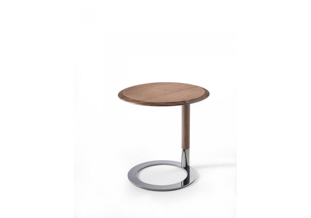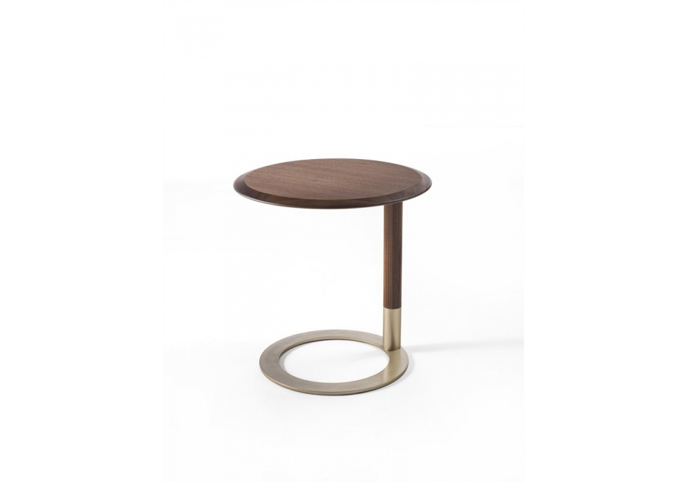 Jok firmato da Gabriele & Oscar Buratti per Porada è un tavolino d'appoggio con base in metallo, stelo in legno e piano in cristallo o pietra.