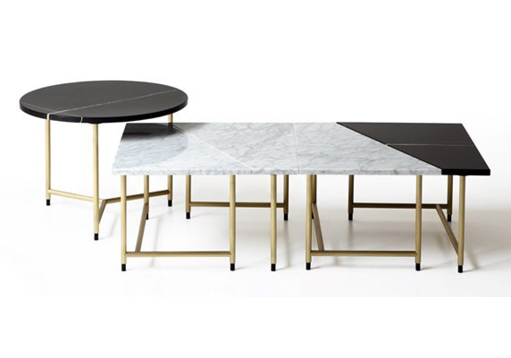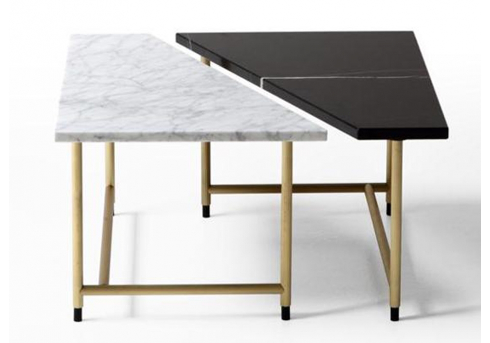 Palladio firmato da GamFratesi per Porro è un tavolino con base in ottone e piano in diverse finiture di marmo. Disponibile in due dimensioni, con piano rotondo o trapezoidale.