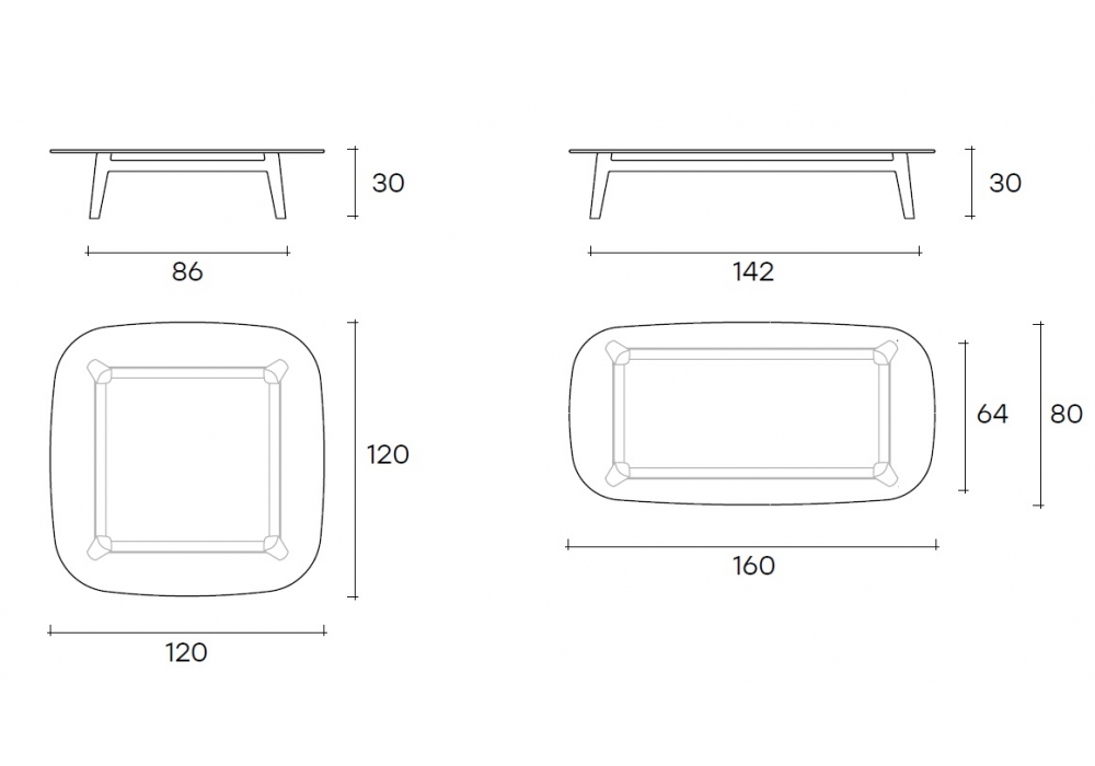 | Dimensioni | 160 x 80 x H 30 cm; 120 x 120 x H 30 cm. |