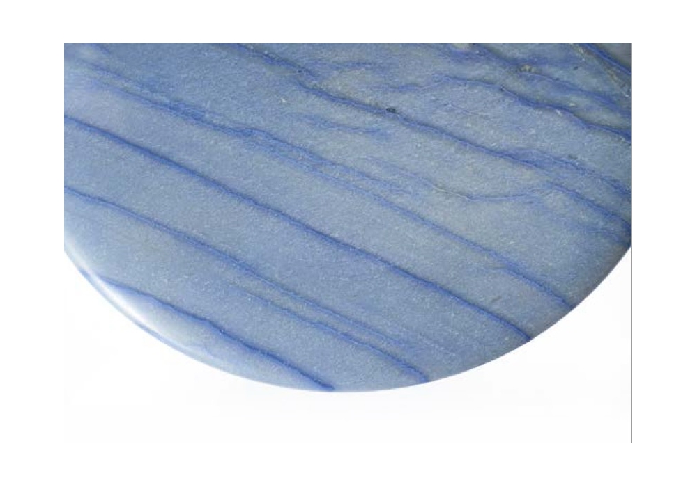 Papiro firmato da Patricia Urquiola per Budri è un tavolino realizzato in Azul Macauba, preziosa quarzite, estratta dalla cava