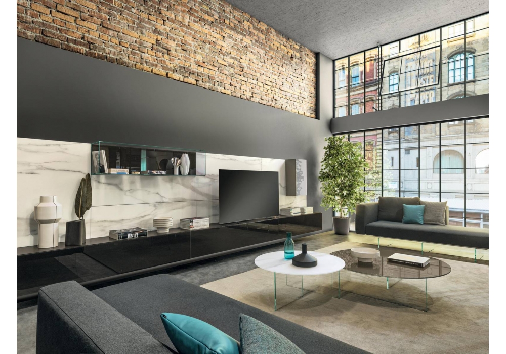 Air Round firmato da Daniele Lago per Lago è un tavolino con piano in vetro lucido o opaco e gambe in vetro extra-chiaro o fumè grigio. Disponibile in diverse finiture e dimensioni.