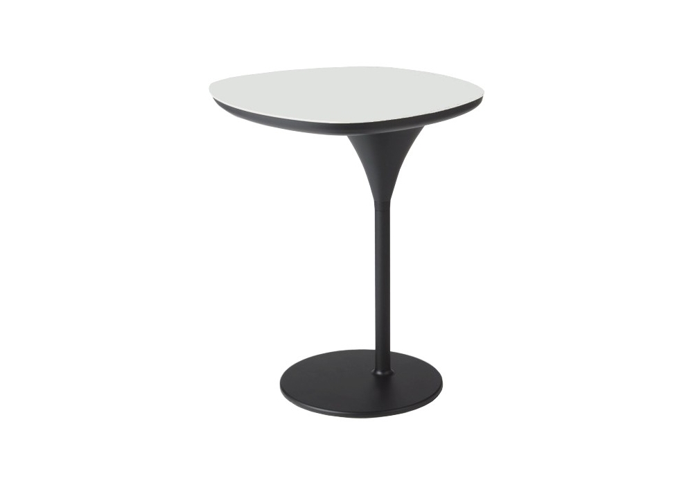 Bloomy firmato da Patricia Urquiola per Moroso è un tavolino con base in acciaio verniciato nero o bianco e guscio in ABS stampato in tinta. Piano in Laminam®.
