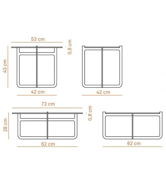 | Dimensioni | • 53 x 42 x H 43 cm; • 73 x 62 x H 28 cm |