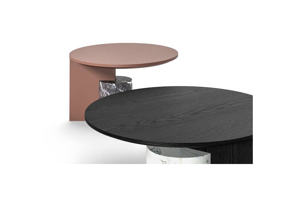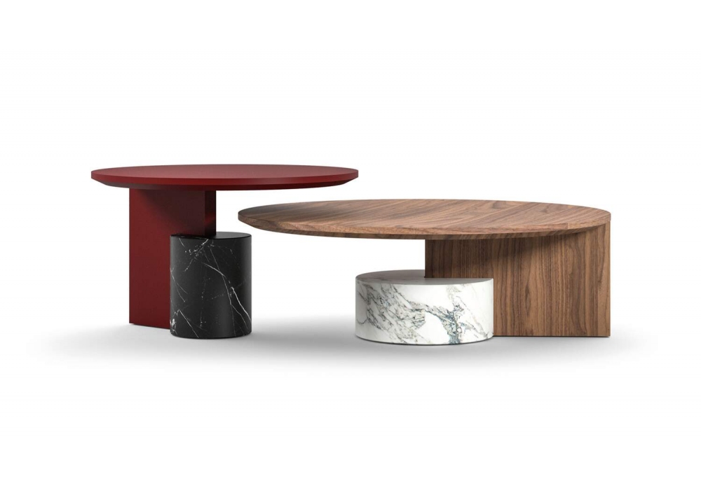 557 Sengu Table firmato da Patricia Urquiola per Cassina è un tavolino realizzato con piano e struttura in legno e base in marmo. Disponibile in diverse finiture e dimensioni.