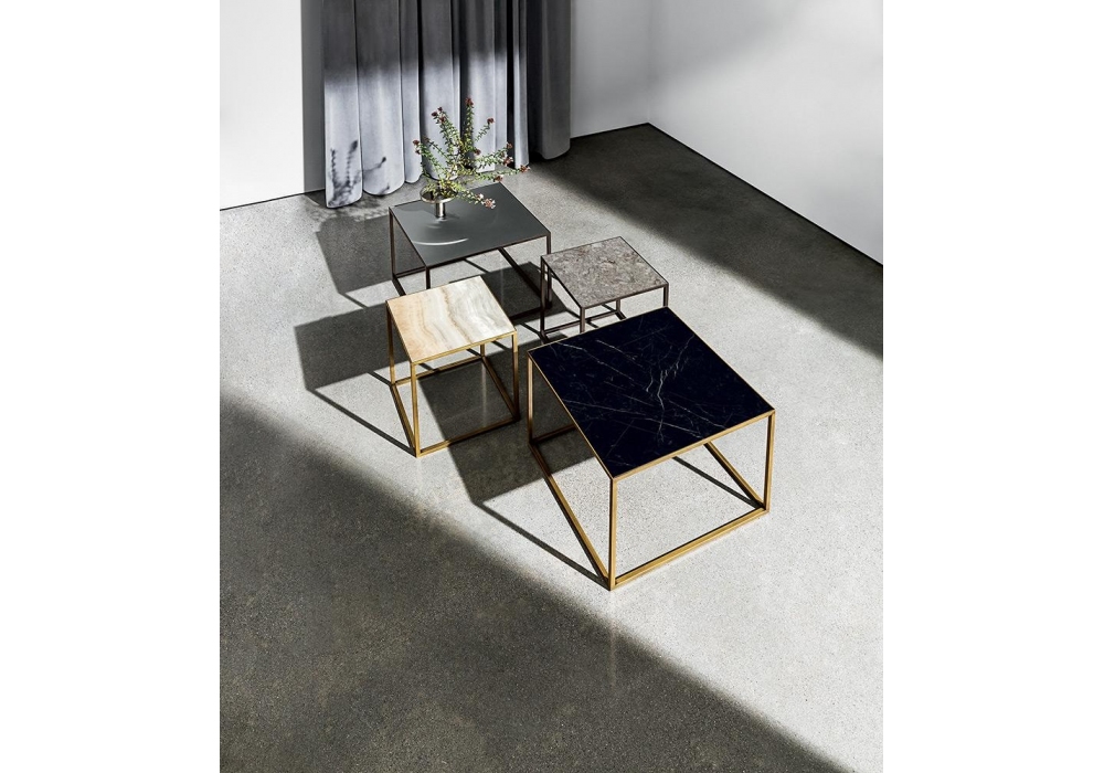 Quadro firmato da Lievore, Altherr, Molina per Sovet è un tavolino realizzato con struttura in metallo e top in ceramica o specchio. Disponibile in diverse finiture e dimensioni.