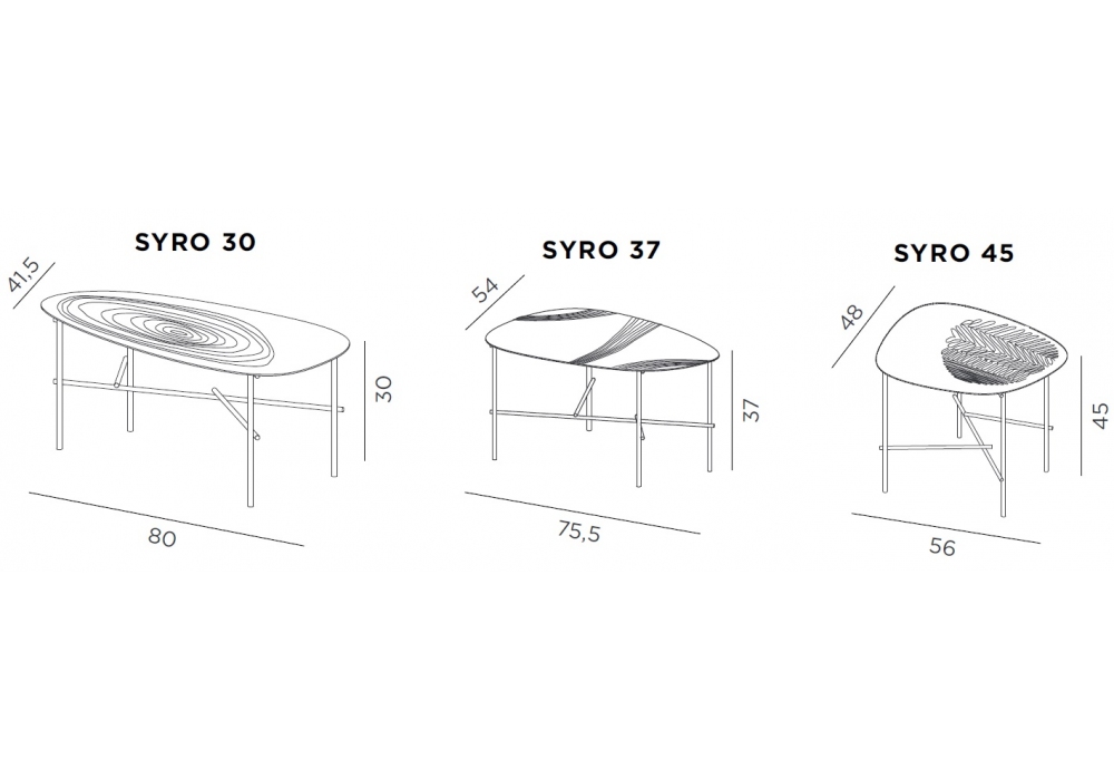 Syro firmato da Emilio Nanni per DeCastelli è un tavolino realizzato in metallo con piano sagomato ed inciso. Disponibile in diverse finiture e dimensioni.