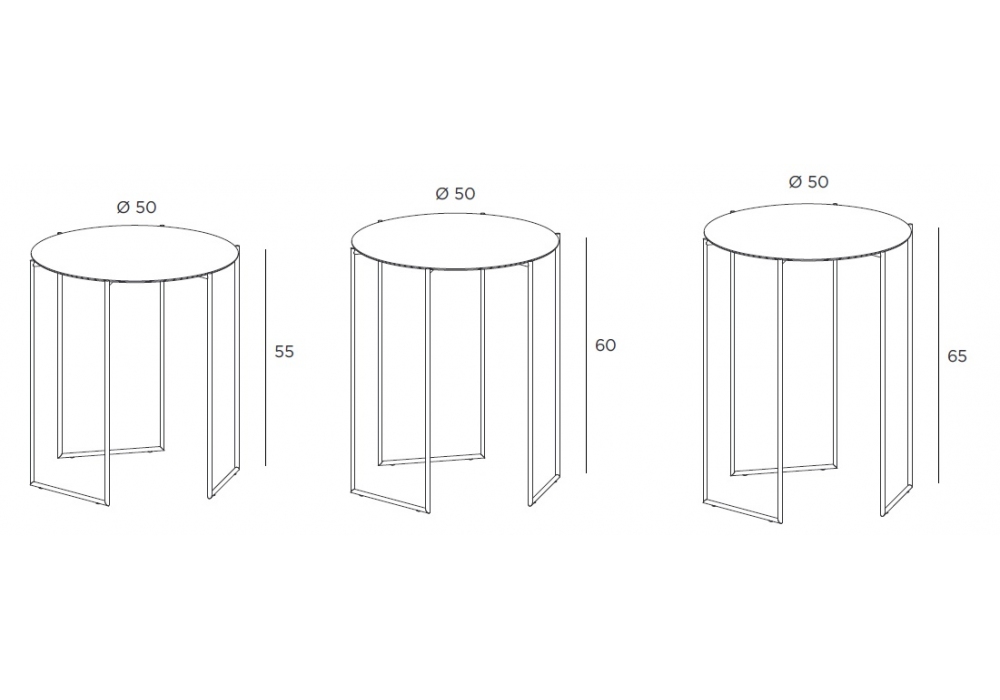 | Dimensioni | • Ø 50 x H 55 cm; • Ø 50 x H 60 cm; • Ø 50 x H 65 cm |