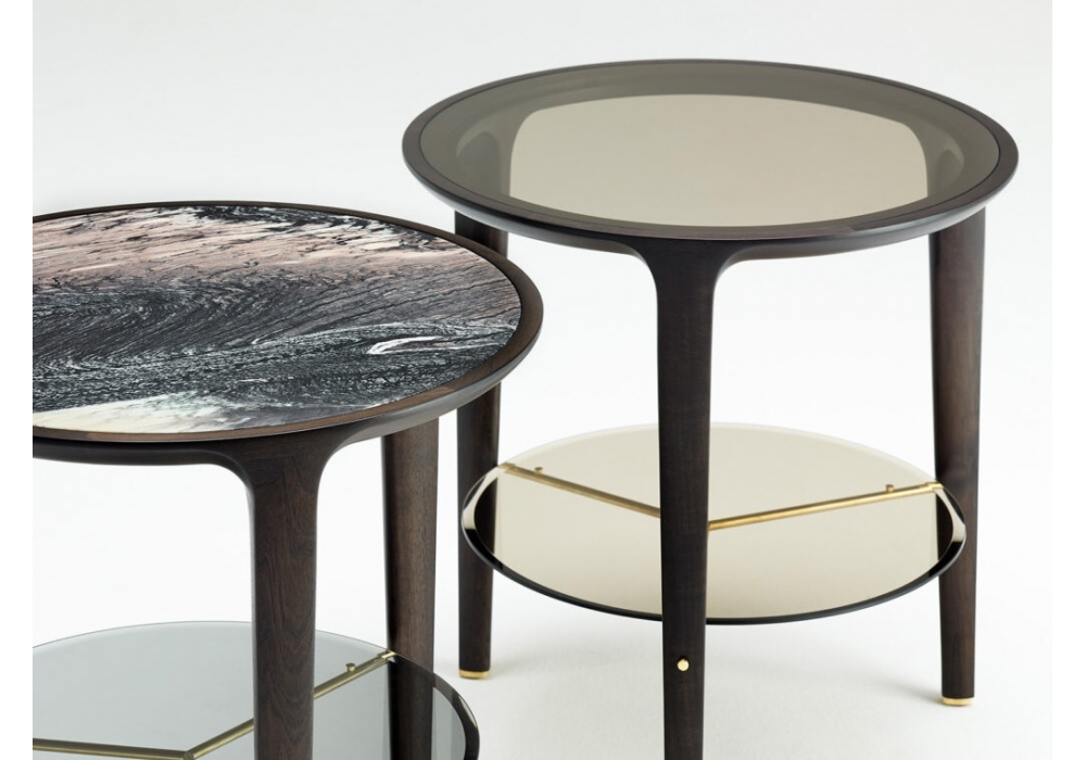 Sweet Dreams firmato da DRAW per Ceccotti Collezioni è un tavolino in massello di noce americano, doppio piano in vetro 8 mm temperato, o piano superiore in marmo e piano inferiore in vetro.