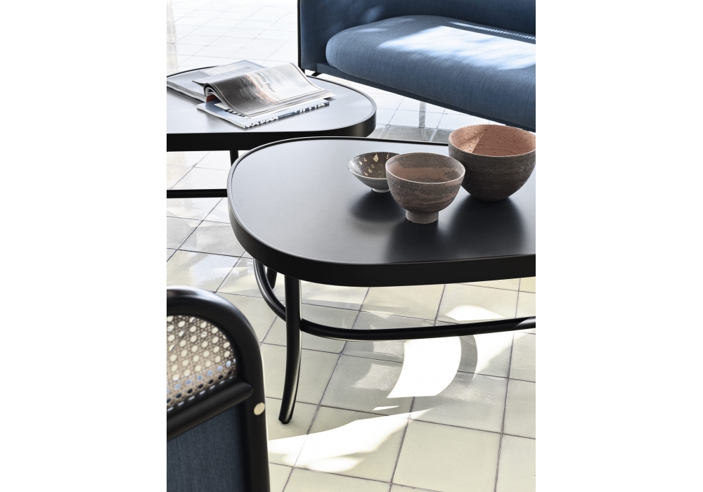 Peer A firmato da Front Design per Gebrüder Thonet Vienna è un tavolino con struttura in faggio curvato e piano in laminato.