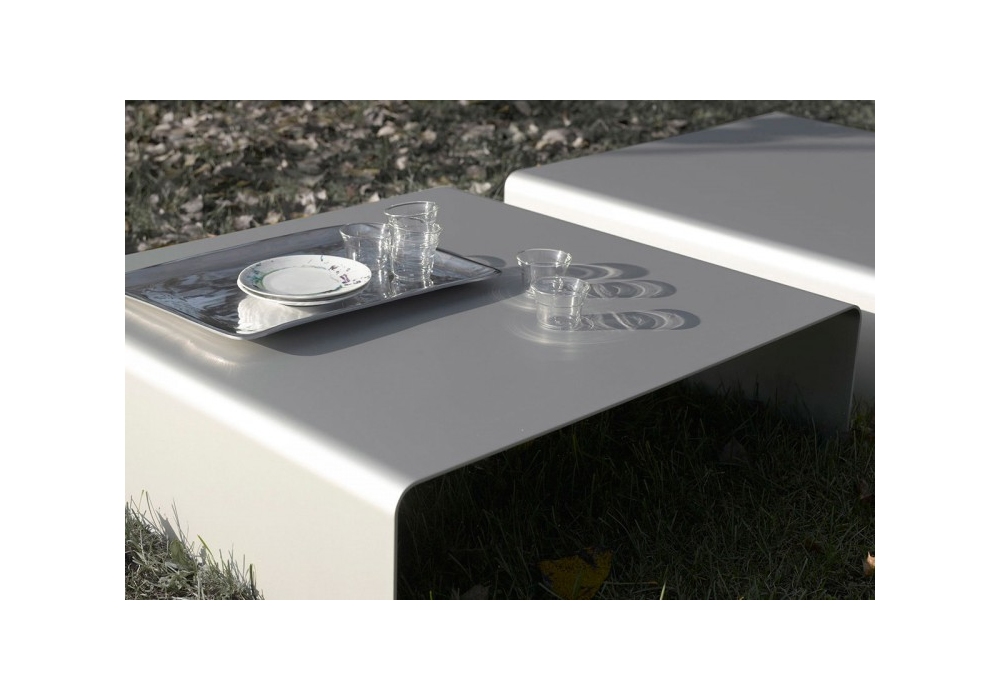 La Table Basse firmato da Xavier Lust per MDF Italia è un tavolino realizzato da un unico foglio di alluminio, curvato e verniciato in diverse finiture, privo di giunture. Può essere utilizzato sia in ambiente interno che esterno ed è disponibile in diverse dimensioni.